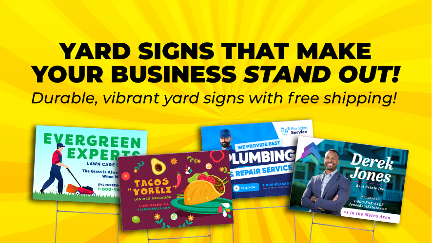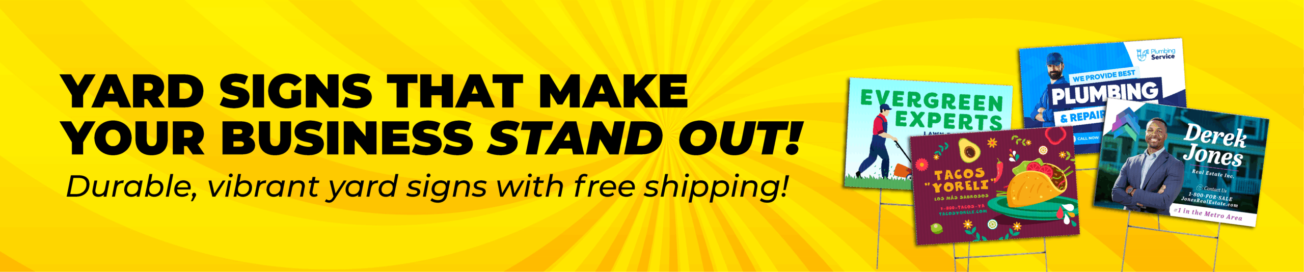 The best value on yard signs period. Our EZ-123 Yard Sign Bundles include FREE custom door hangers & Free business cards (Insertable), H-stakes, and full-color, double-sided prints, on durable, weatherproof coroplast + Free Shipping (Continental US) all at the lowest prices around.